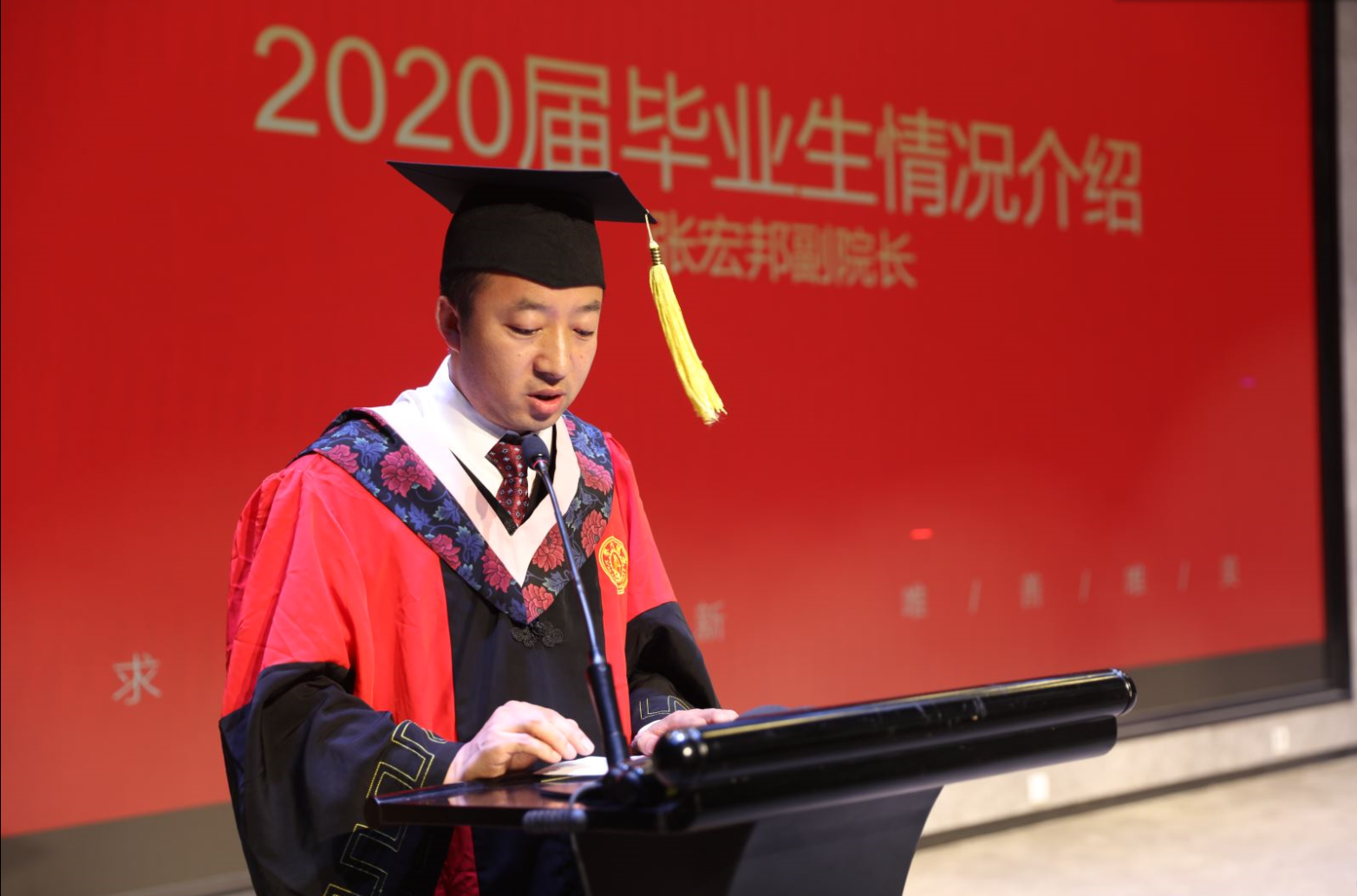 迎来第一届本、硕毕业生,其中本科生20位,研究生49位。本科生中13名同学选择继续学业,其中5位同学分别继续在伦敦政治经济学院、伦敦商学院、谢菲尔德大学、乌特勒支大学、香港中文大学攻读硕士学位。研究生就业状况喜人,学生超过半数签约世界500强或国内500强企业,更有2名学生投身国防军工事业,立志为国防现代化贡献力量。最后,张宏邦副院长希望大家多回学院看看,母校永远是家。