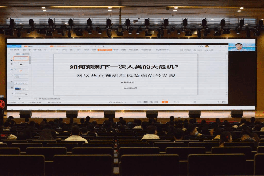 沈阳教授同样以远程方式,分享了关于“网络热点预测与风险弱信号发现”的研究成果。他认为,通过对弱信号的意义构建和数据捕捉,可以尽早发现触发事件,加快风险识别过程,为后续的风险分析、评估和应对争取更多时间。这对于未来人类大危机的预测具有重要意义。