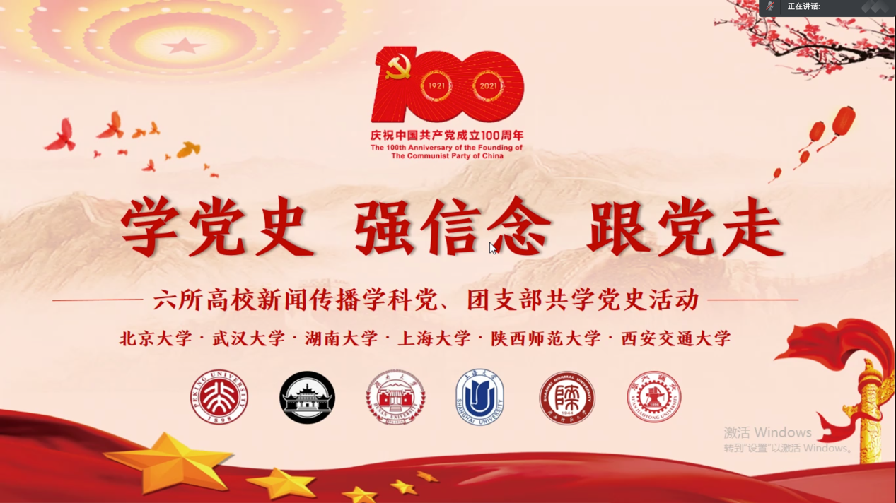邀请北京大学、武汉大学、湖南大学、上海大学、陕西师范大学的新闻传播学科党、团支部联合举办线上共学党史活动。本次活动的主题为“学党史、强信念、跟党走”,活动由老虎机线上-真钱老虎机-网络老虎机