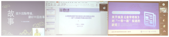 新媒体系主任马晓悦主持,新媒体系陈积银教授、新闻系申楠副教授点评。十七位不同高校的博士研究生从“一带一路”的话语体系建设、社交媒体平台的社会支持、价值塑造、对外传播话语等方面剖析,寻找解决传播困境的方法和策略。